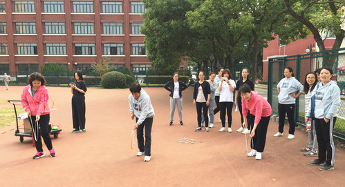 之后,学院参加学校广播操比赛的老师们进行了彩排训练。