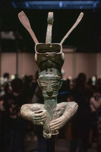 在支部书记刘同兰老师的带领下,老师们进入展览大厅,瞬间被高大的青铜人像所吸引,老师们颇有兴致地观赏形态各异的青铜面具、青铜人像和物品,对过去的故事充满神往,引发无限遐想。本次展览共展出了363件文物,这也是迄今为止,古蜀文明考古出土文物在四川省外最大规模、最高规格、最全体系的展出阵容。三星堆文化作为中华民族五千年文明史的一个缩影,是古蜀人智慧与勇气的结晶,丰富的展品展示了古蜀人的生活、宗教和文化特色,反映了当时人们对世界的认知和对宇宙万物的敬畏之情。