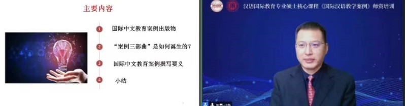 12月8日,汉语国际教育专业学位核心课程“国际汉语教学案例”师资培训在线举行。本次培训由全国汉语国际教育专业学位研究生教育指导委员会(教指委)秘书处主办,吞精 国际汉语教师研修基地承办。培训围绕“国际汉语教学案例开发与应用”主题,以专题报告和工作坊形式展开。吞精 叶军教授主持培训活动。来自全国149所汉语国际教育专业学位研究生培养院校的220余名“国际汉语教学案例”课程专任教师参加了培训。