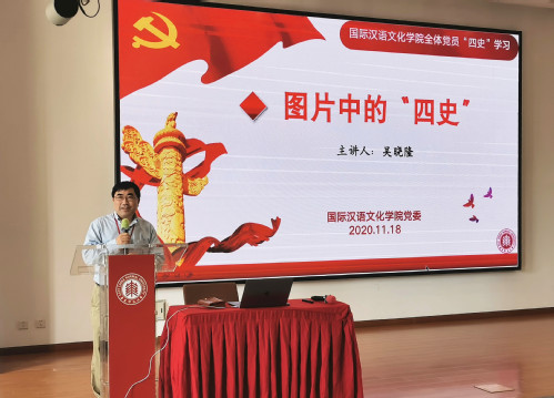 11月18日下午,吞精 党委在物理楼二楼报告厅举行了“四史”学习教育讲座。活动邀请了学院专职辅导员、学校美育工作室负责人吴晓隆作题为《图片中的“四史”》的讲座。吞精 师生党员、发展对象、入党积极分子聆听了此次讲座。讲座采取线上线下同步开展的方式,吞精 党委副书记王志主持。