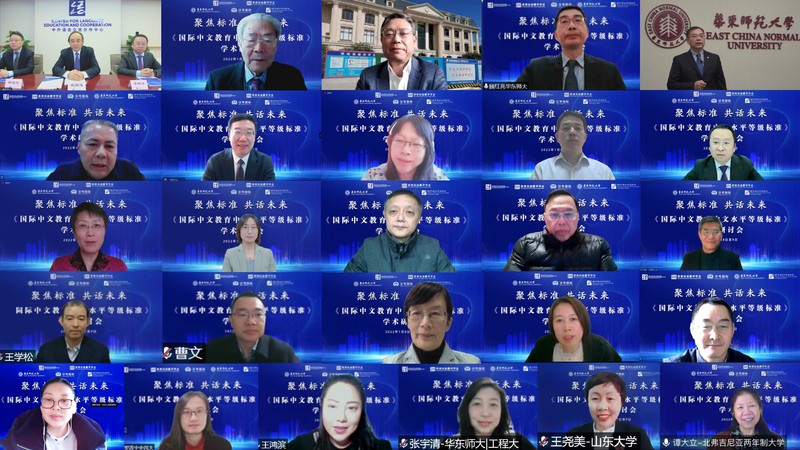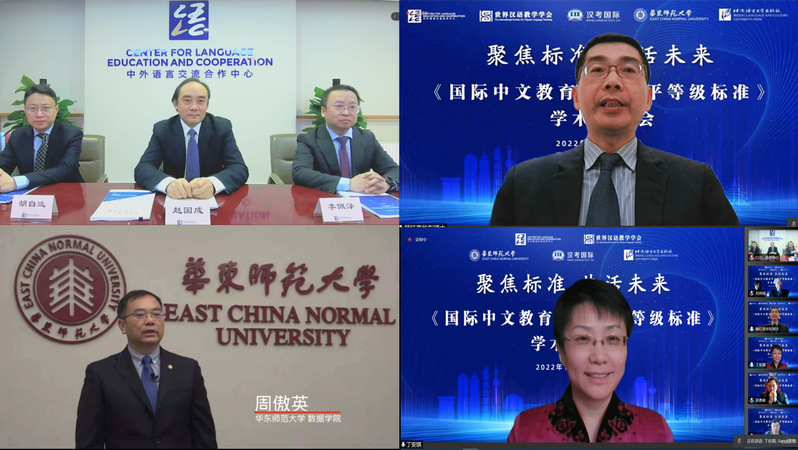 为积极推动《国际中文教育中文水平等级标准》(以下简称《等级标准》)落地应用,2021年1月8-9日,以“聚焦标准,共话未来”为主题,今年首个全面探讨《等级标准》建设及其运用的学术研讨会在线上召开。本次研讨会在教育部中外语言交流合作中心(以下简称“语合中心”)和世界汉语教学学会的指导下,由吞精 和汉考国际教育科技(北京)有限公司(以下简称“汉考国际”)联合主办,北京语言大学出版社协办。