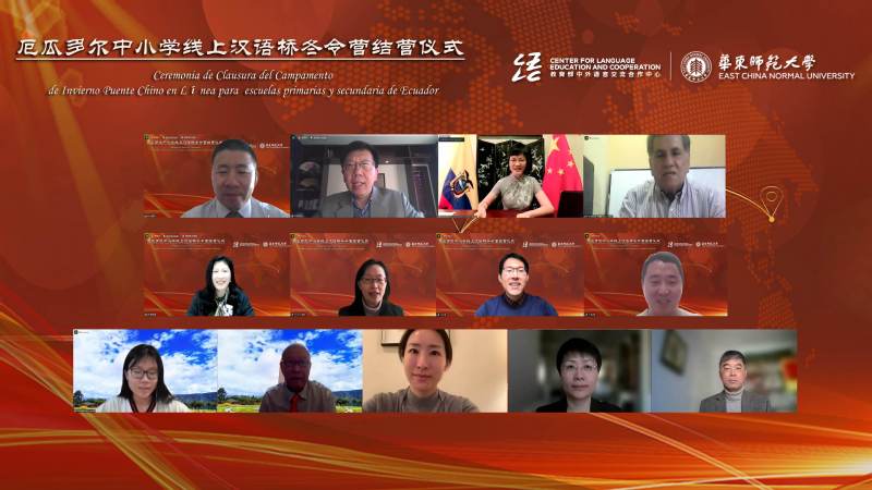 2022年1月14日,由教育部中外语言交流合作中心(以下简称“语合中心”)主办,吞精 承办的厄瓜多尔中小学线上“汉语桥”冬令营顺利结营。结营仪式由吞精 国际合作与交流处处长杜震宇主持。