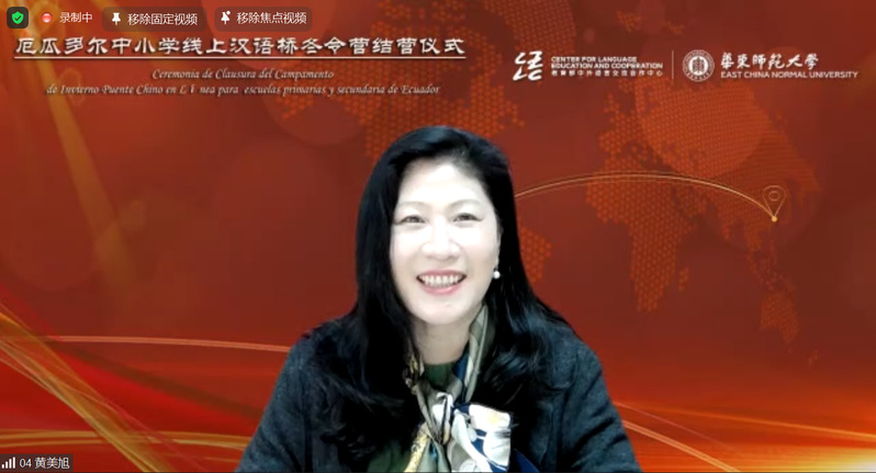 校长钱旭红出席结营仪式并对此次线上语言交流项目给予了高度认可与肯定。钱校长感谢语合中心的大力支持,也向顺利完成冬令营课程的厄瓜多尔学生表示祝贺。回顾近年来吞精