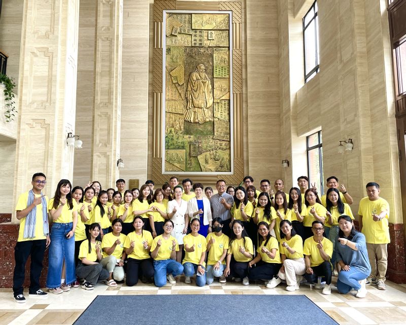 研修班的所有老师们在基地孔子像前合影留念,将美好瞬间定格在这个暑假。
