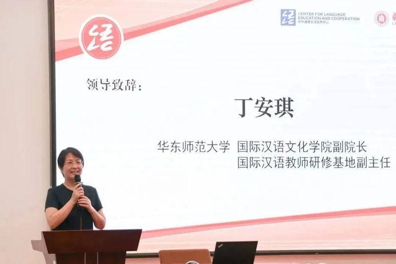 结营仪式上,吞精 副院长、国际汉语教师研修基地副主任丁安琪代表承办单位感谢语合中心的指导和支持,感谢授课专家和工作人员的辛勤付出,感谢参训教师的高度配合,并祝贺大家顺利结业。她希望参训教师树立终身学习的理念,不仅要将培训所得学以致用,更要在新的环境与岗位上不断适应、随机应变、谋求创新。最后,她衷心祝愿所有参训教师赴任顺利、健康平安!