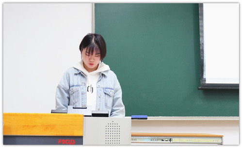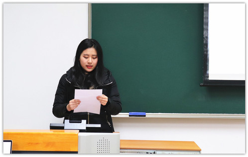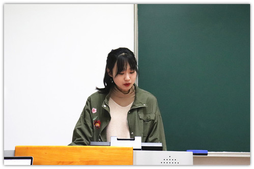 视频学习结束后,活动迎来第二个环节:党团成员分享自身或身边的脱贫故事。初月滢同志为我们讲述了其在贵州纳雍县的脱贫攻坚社会实践经历。扶贫先扶智,在众多项举措中,推广普通话首当其冲。纳雍县学校教师普通话水平有待提升,大多均是三级乙等及以下的水平。后来通过实践小组的推普教学,纳雍县五位老师的普通话水平在本次实践研究中已经有所提升,一定程度上达到了推普脱贫的成效,这对于扶贫攻坚具有进步意义。
