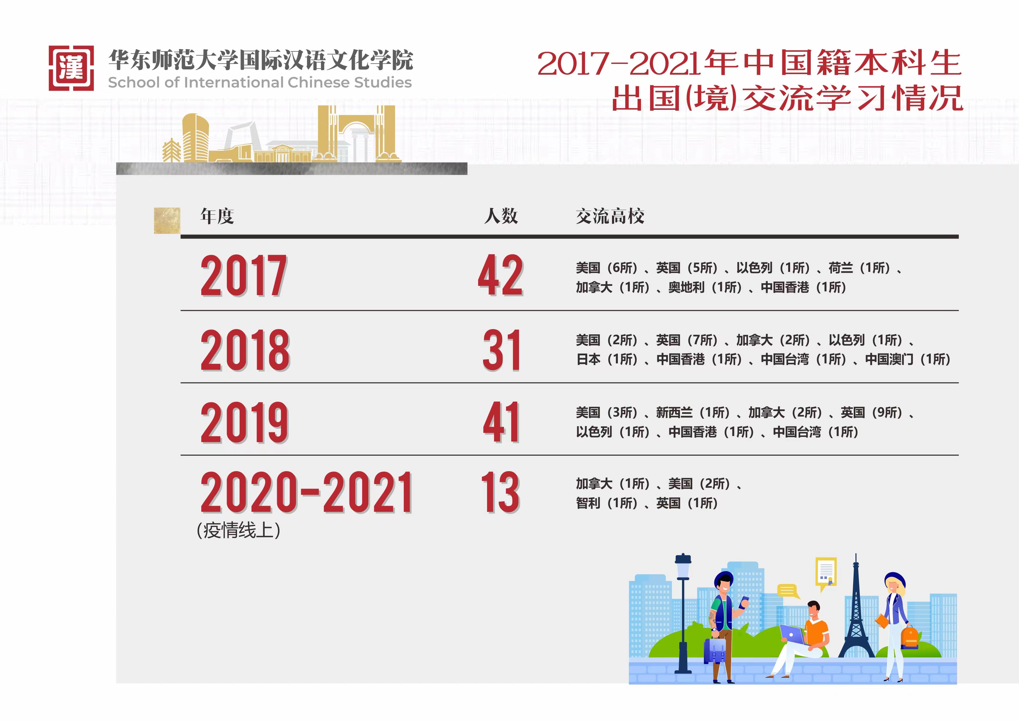 2017-2021年中国籍本科生出国(境)交流学习情况