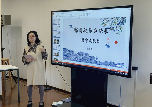 实践组代表沈香向大家分享了《山海情》中郭闽航与白校长这两个角色,以及相关人物原型——援宁支教团,并按照人物介绍、剧情回顾、故事原型的顺序展开。沈香介绍了的厦门大学研究生支教团241名队员从1999年到2021年的持续支教经历。沈香表示:“我们学校也有研究生支教团,大家前赴后继的去到教育相对落后的地方支教,我们也要向他们学习。”