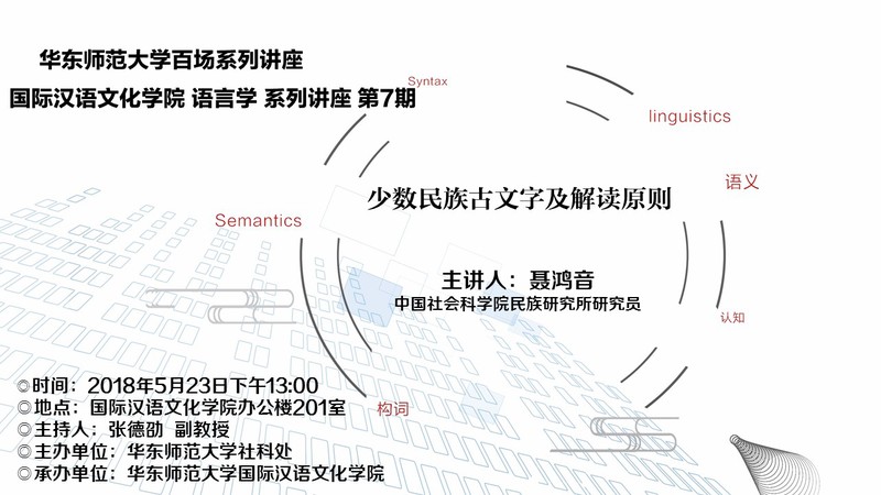20世纪以来,在中国的少数民族地区发现了多种此前未知的文字,这些文字可以填补文字发展史上的空白,且可以引起人们对文字传统定义的新思考。讲座另以契丹文字为例,介绍解读未知的古文字的原则和方法。