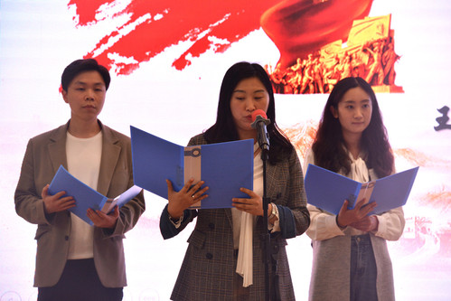 随后,由国汉学院的辅导员老师们深情朗诵《与妻书》,展现了黎明前夜革命党人甘愿用鲜血换来刺破云层的光芒的坚定与不屈。