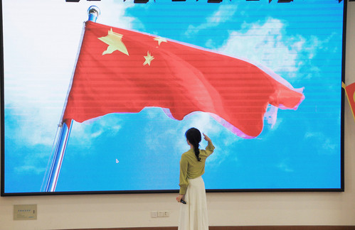活动接近尾声,全体团员起立,在领誓人的带领下重温入团誓词。“我志愿加入中国共产主义青年团,坚决拥护中国共产党的领导,遵守团的章程,执行团的决议,履行团员义务,严守团的纪律,勤奋学习,积极工作,吃苦在前,享受在后,为共产主义事业而奋斗”。庄严宣誓声中,同学们自豪光耀地认识到了新时代青年人所肩负的使命。随着团歌《光荣啊,中国共青团》奏响,同学们心中的五星红旗烈烈飘扬。
