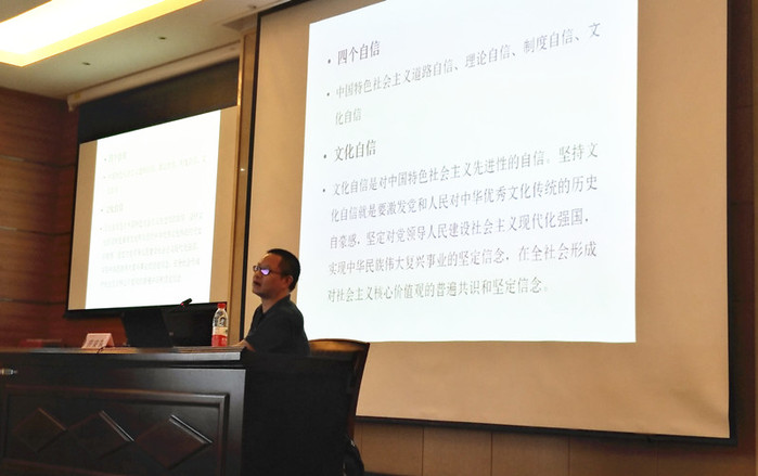 活动的后半阶段,吞精 哲学系教授晋荣东为全体党员同志作了《中国何以“文化自信”》的专题讲座,针对吞精 毕业生党员的国际化特点,从“四个自信”特别是文化自信入手,从古代中国的“天下观”和世界地图的案例出发,阐述了文化自信的历史渊源和具体内涵,提升了同学们的党性和党员意识,帮助毕业生党员深刻认识了中国特色社会主义制度、道路、理论和文化在历史根基上的底气和信心。