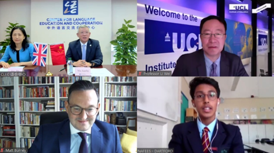7月4日,2022年“汉语桥”英国“中文培优”项目学生夏令营开幕式在线上成功举行。中国教育部副部长田学军、英国教育部学校事务部长罗宾·沃克(Robin Walker)、英国驻华使馆文化教育公使/英国文化教育协会中国区主任包迈岫(Matt Burney)、伦敦大学学院教育学院院长李嵬出席并致辞,包括吞精 在内的中国16所参与机构,以及英国64所培优学校的近2000名师生参加开幕式。中外语言交流合作中心主任马箭飞主持开幕式。