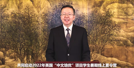 田学军在视频致辞中高度赞赏英方积极推动中文教学的努力,表示帮助两国民众特别是青少年学习对方的语言,一直是两国教育领域的重点工作之一,希望英国学生通过学习中文,了解中国的过去、读懂中国的现在和未来,与参加夏令营的中国学生分享成长经历、建立真挚友谊,并在合适的时候到中国实地感受一个真实、立体、生动的中国。