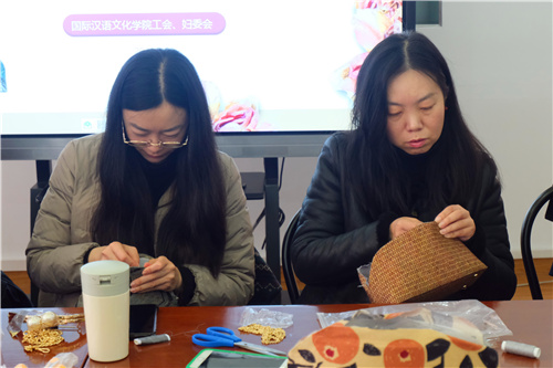 为2021年“三八节”来临,切实做好学院“妇女小家”建设工作,3月3日下午,吞精 工会、妇委会在院办201举办“展巾帼风采 建品质国汉”口金包制作活动。学院党委书记黄美旭、副院长文娟、院工会主席肖路及学院工会女性会员参加了活动。