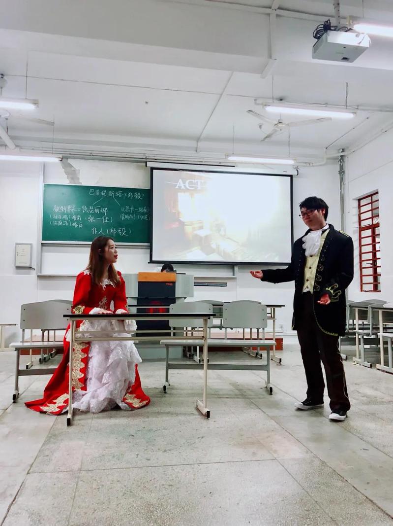 其中,让我印象最深刻的是大四期间毛尖老师的英美文学史及作品课,这两门课的期中作业,毛尖老师让我们可以选择通过演一出戏剧来完成。我和我的组员分别选择了莎士比亚的《驯悍记》和奥尼尔的《天边外》来表演。从选择修改剧本、背台词、排练磨合表演、租借衣服准备道具到最后的上台表演,虽然只是在专业同学面前表演,但是通过这两场沉浸式的剧本学习,让我们更深地体会到了英美戏剧的魅力,以及文字背后所蕴含的深刻情感。这也让我懂得了,只有切身的体验和实践才能让学习留下更持久的影响。在教学中也是如此,老师“一言堂”式的灌输知识并不能让学生很好地掌握知识点,反而放手让学生在实际的语言环境中去沉浸式的学习才会让他们留下更深刻的印象。因此,在我的实际课堂中,我也会为我的学生创造许多自主学习的机会,让他们在做活动、做游戏的过程中操练语言点,从而达到我的教学目的。