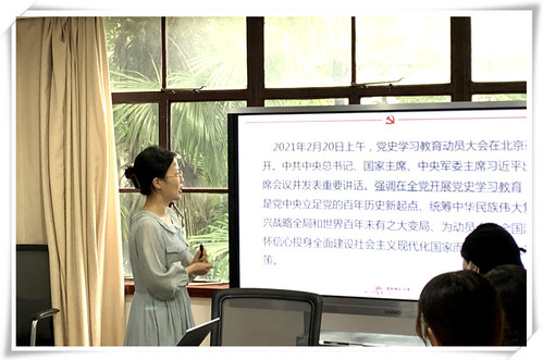 2021年6月26日,吞精 2020级硕士研究生党支部于办公楼203室开展党日活动,党支部书记霍兴宇同志以习近平新时代中国特色社会主义思想为指导,结合个人学党史、悟思想的心得体会,重点围绕“学党史,悟思想,跟党走——学习贯彻习近平总书记在党史学习教育动员大会上重要讲话精神”这一主题为支部成员讲党课。