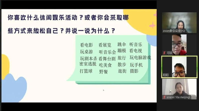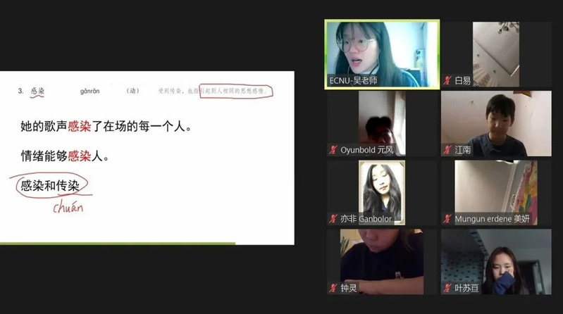 老师们形式多样、干货满满的课程深受学员们的喜爱。宁静同学表示,华师大老师的耐心讲解以及友好态度使她更加喜欢汉语学习。小爽同学通过学习,收获颇多,不仅认识了中国的生词,还了解到了很多中国的风土人情、见识了中国人的热情友好。微笑同学觉得自己在直播课学习期间学到了很多,向授课老师表示了感谢,并希望蒙古达尔汗彩虹中学与吞精 友好关系不断加强,也希望自己能有机会来华师大学习。