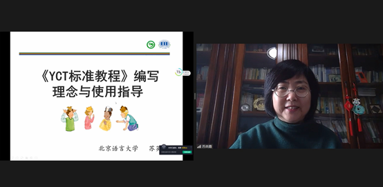 北京语言大学苏英霞教授结合自身多年的教学经验,从少儿中文教学的基本特点出发,结合YCT考试、教材研发及教材使用说明,为学员全面梳理了YCT考试要点与《YCT标准教程》的设计思路与使用方法。