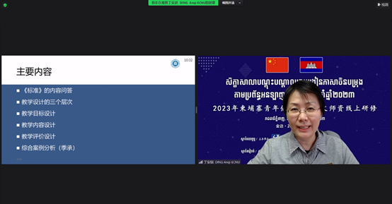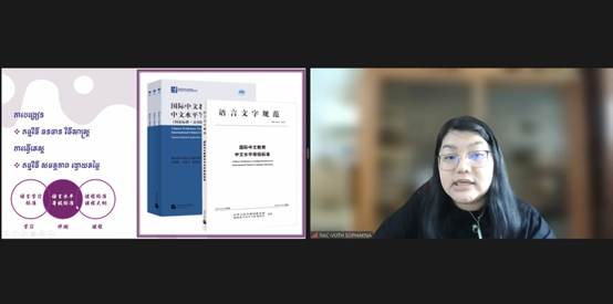 柬埔寨皇家科学院国际中文教育学院副教授苏碧娜(Vuth Sophakna)围绕中文纳入柬埔寨国民教育体系后的发展趋势,帮助学员了解最新的柬埔寨中文教育动态,明确本土中文教师的职业定位和职业发展,提升学员们对柬埔寨中文教育的认知。