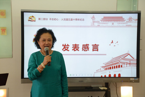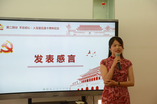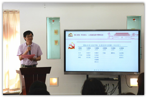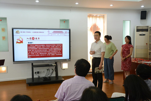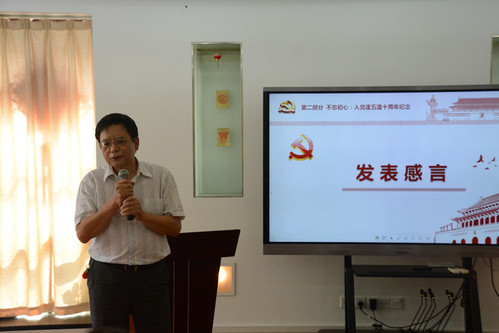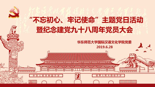 为教育党员牢记党的宗旨、不忘入党初心,在每年纪念建党活动中,学院党委都会安排“入党逢五逢十周年纪念”仪式。仪式上,院长张建民宣读“入党纪念光荣榜”名单。黄薇、张建民和院党委委员吴勇毅为周年纪念的各位老师赠送了纪念品并合影留念。各位老师依次发表入党纪念感言,表示要不忘初心,牢记使命,以理想信念滋养初心,以担当奉献践行初心。几代国汉学人的“初心”跨越了45载,但他们都拥有一份同为共产党员的初心和使命。