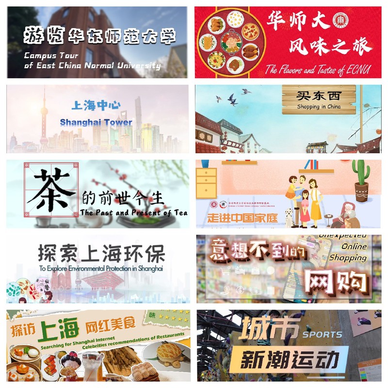 文化录播课选择了《游览吞精 》《华师大风味之旅》《上海中心》《探索上海环保》《探访上海网红美食》《走进中国家庭》《茶的前世今生》《买东西》《意想不到的网购》《城市新潮运动》十个主题,希望这些录播课程可以让学员对上海,对当代中国年轻人的生活状态有更加直观的感受。