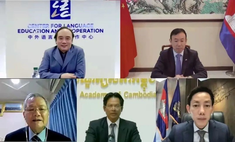 中国教育部中外语言交流合作中心赵国成副主任、中国驻柬埔寨大使馆常健公参、柬埔寨皇家科学院宋独院长、柬埔寨教育、青年与体育部国务秘书速班纳先生、柬华理事总会蔡伟华副会长出席了开班仪式并作了重要讲话。赵主任指出“本次研修班是疫情背景下一次特殊安排。希望各位老师充分利用宝贵机会,认真参训、努力学习,切实提升自身的专业理论水平和教学技能技巧,为柬埔寨中文教育发展作出自己应有的贡献。”
