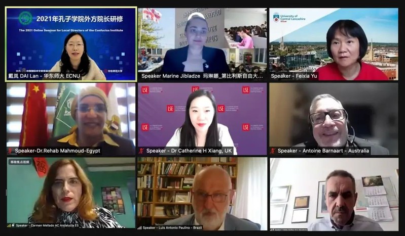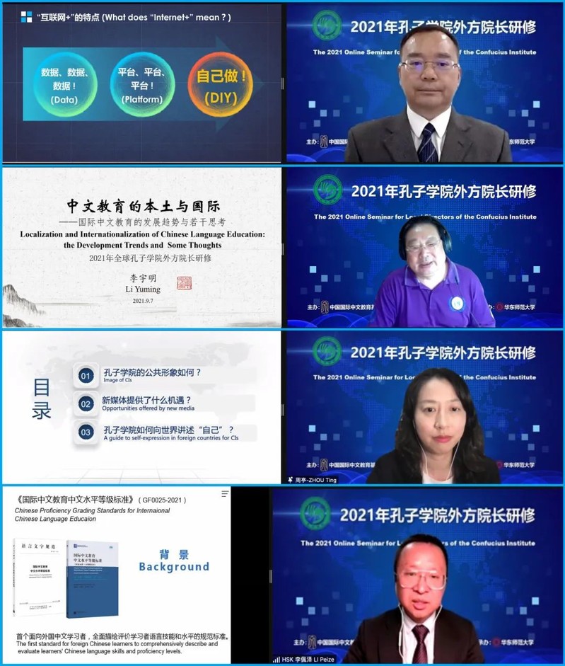 9月17日,为期两周的2021年孔子学院外方院长研修顺利结营,本次线上研修包含四个主题讲座和两场分论坛研讨。四场主题讲座分别由吞精 周傲英教授、北京语言大学李宇明教授、中国传媒大学周亭教授、五洲汉风网络科技(北京)有限公司李佩泽博士讲授,四位专家分别从智慧教育、国际中文教育、孔子学院形象塑造和中文水平等级标准等方面提供了专业发言和针对性建议。