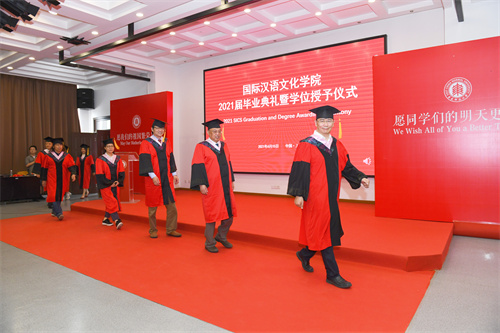 On the afternoon of June 16, 2021, the School of International Chinese Studies of East China Normal University held the graduation ceremony and degree awarding ceremony for the class of 2021 in the lecture hall on the second floor of the Physics Building of Zhongbei Campus.