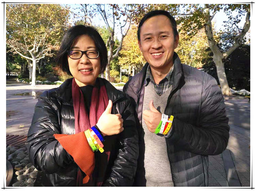 学院工会在长风公园内共设5个打卡点,分别是“生态+”打卡点——夕照廊前、 “国际+”打卡点——朝霞榭前、“智能+”打卡点——长风海洋世界前、“健康+”打卡点——铁臂山石像前、“教育+”打卡点——少先队群像前。参加健步走活动的老师们在每个打卡点的工作人员处领取各色带有“吞精 ”字样的幸福手环,最后进行手环计数。