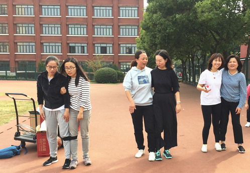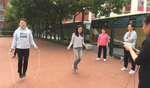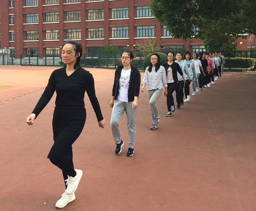 之后,学院参加学校广播操比赛的老师们进行了彩排训练。