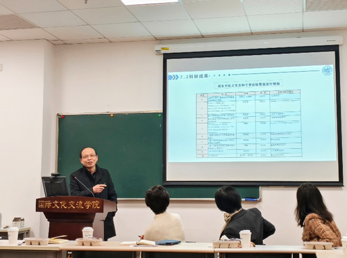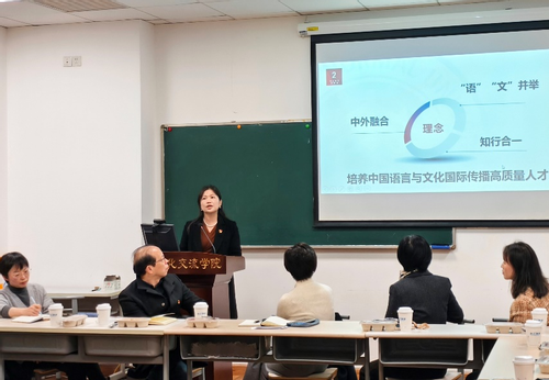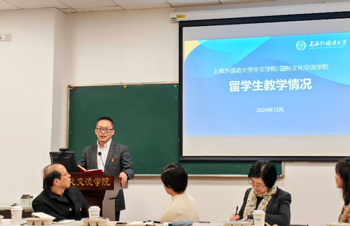上海外国语大学中文学院/国际文化交流学院副院长鹿钦佞介绍了学院的学生层次、内设部门、学生人数、师资力量等,对复旦大学和吞精 同行们在教学工作上给予的支持和分享的经验表示感谢,并期待未来进一步合作。留学生中文教研部主任邵洪亮介绍了学院的博士研究生培养模式,通过“导师点题、学生分享”的形式组织每周专题沙龙,对研究生进行全过程的跟踪指导。