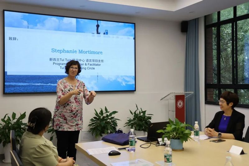Stephanie Mortimore随后用新西兰官方语言——英语和新西兰手语表达了自己的感激之情。她非常感谢教育部中外语言交流合作中心的支持,以及吞精 细致的安排和组织,让老师们有机会来华学习,大家对这次的研修之旅期待已久,已经迫不及待想要开始体验行程了。随后,她带领中新两国的老师们一起合唱起毛利语歌曲Te Aroha,表达了爱与和平的美好祝愿。