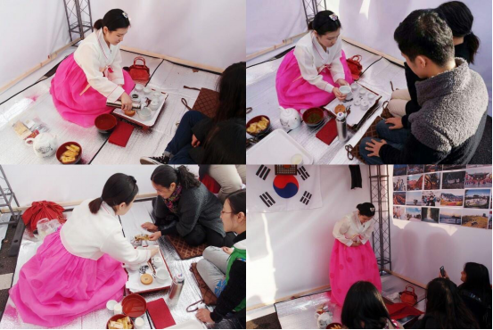 作为国际学生,郑有真被华东师大多元的校园文化影响着,也改变着。2014年第8届吞精 国际文化节上,她带领全校韩国学生,负责Mini Expo韩国馆的设计和展示。因为她的母亲是一位教授韩国传统茶道的老师,她特意向母亲学习了韩国“茶礼”(在韩国传统茶道叫“茶礼”),穿上了从韩国带来的韩服,向全校的中外师生展示了韩国的文化。